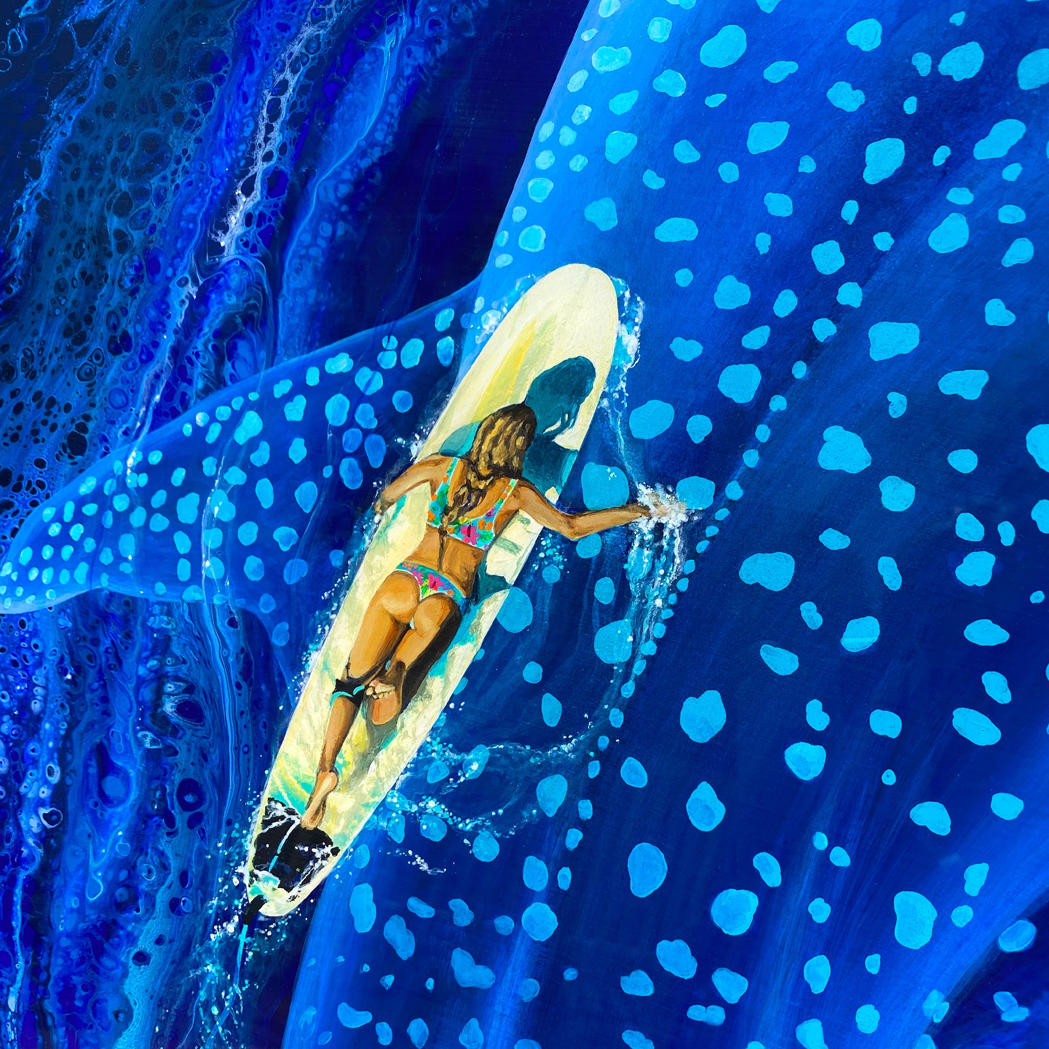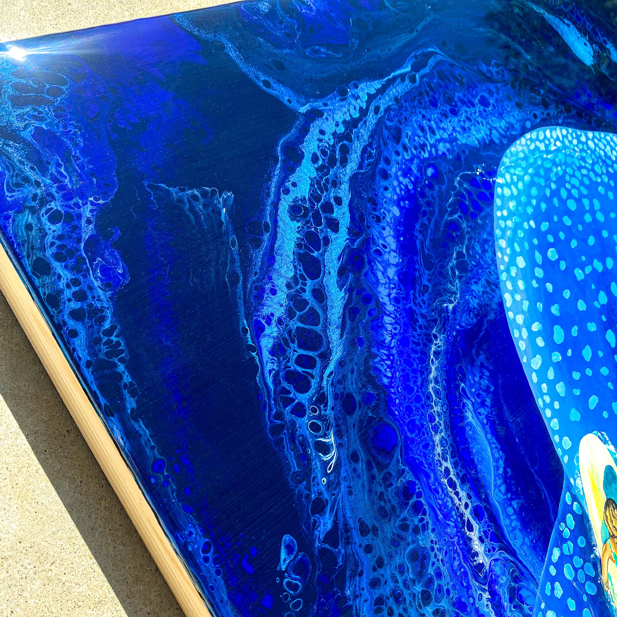 An original acrylic painting on wood panel and sealed with a fine art resin finish by Kahlia Lear. Wood panel is made from birch hardwood giving exceptional panel strength and rigidity, with very fine wood grain. Wood sourced from ecologically fast growth forests. Colors may vary due to monitor settings.