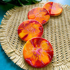 One-of-a-kind, hand painted coasters made with pine wood and sealed with a fine art resin finish by Kahlia Lear. Each coaster is a unique and original piece of art where no two are alike. Comes in a set of 4.