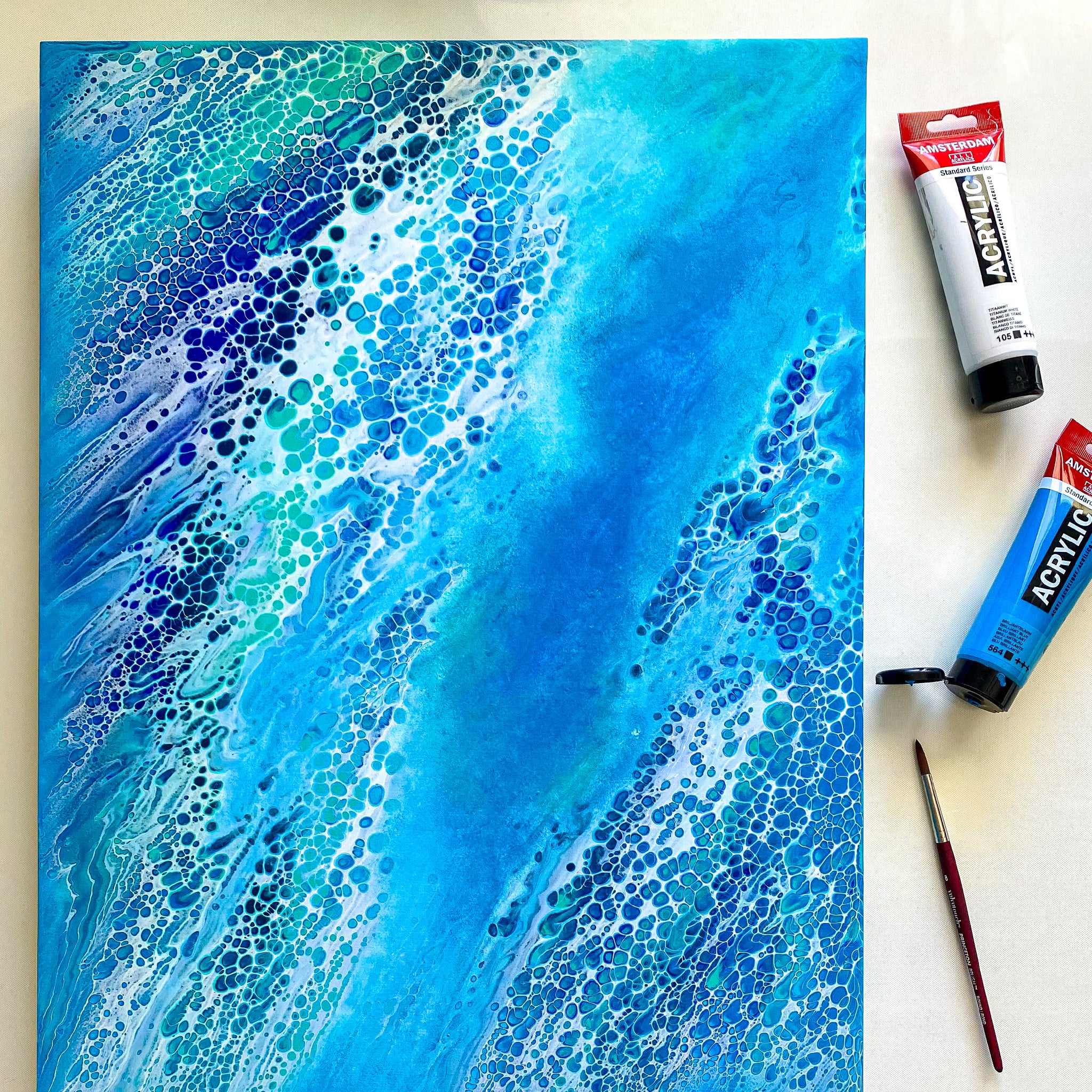 An original acrylic painting on wood panel and sealed with a fine art resin finish by Kahlia Lear. Wood panel is made from premium solid basswood giving fine, uniform characteristics, limited wood grain, and proven stability. Colors may vary due to monitor settings.