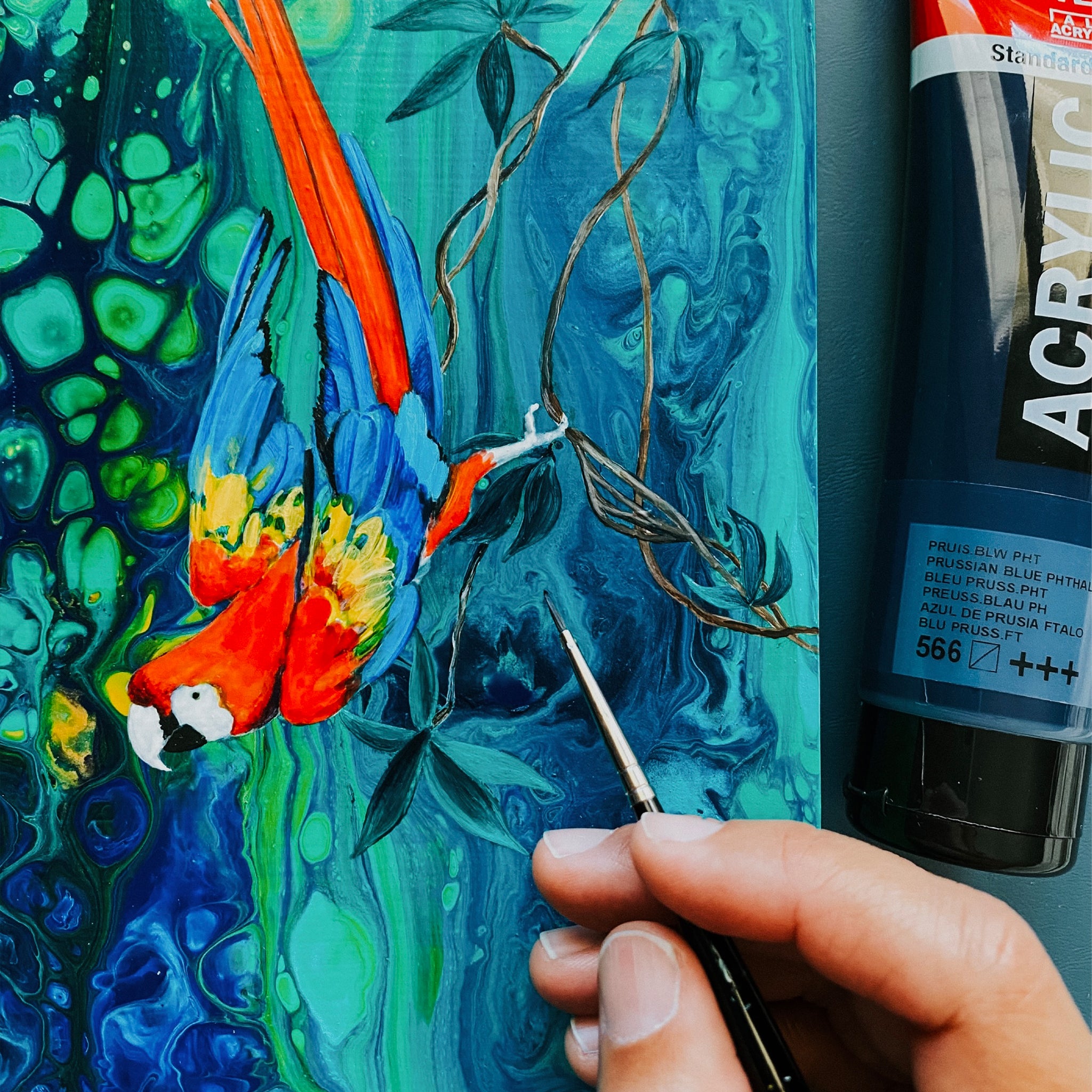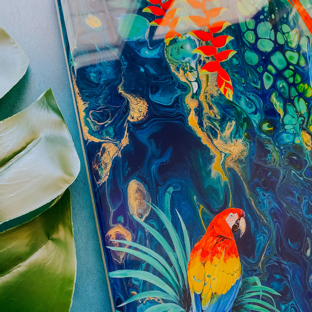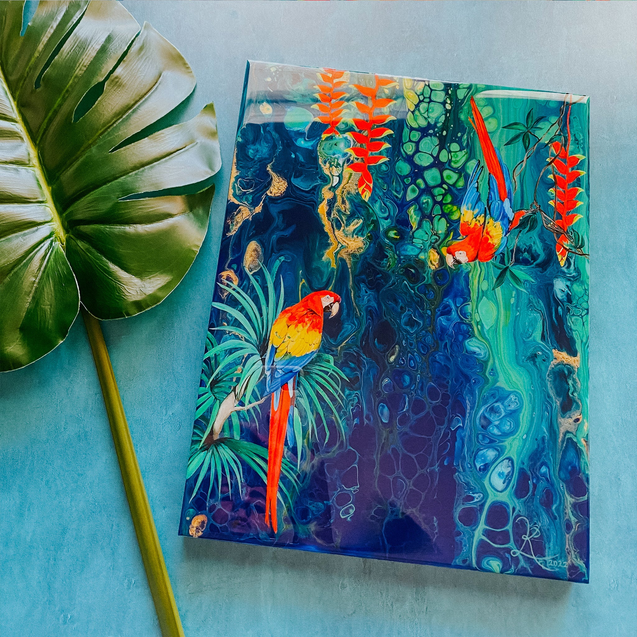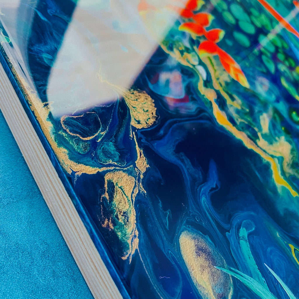 An original acrylic painting on wood panel and sealed with a fine art resin finish by Kahlia Lear. Wood panel is made from birch hardwood giving exceptional panel strength and rigidity, with very fine wood grain. Wood sourced from ecologically fast growth forests. Colors may vary due to monitor settings.