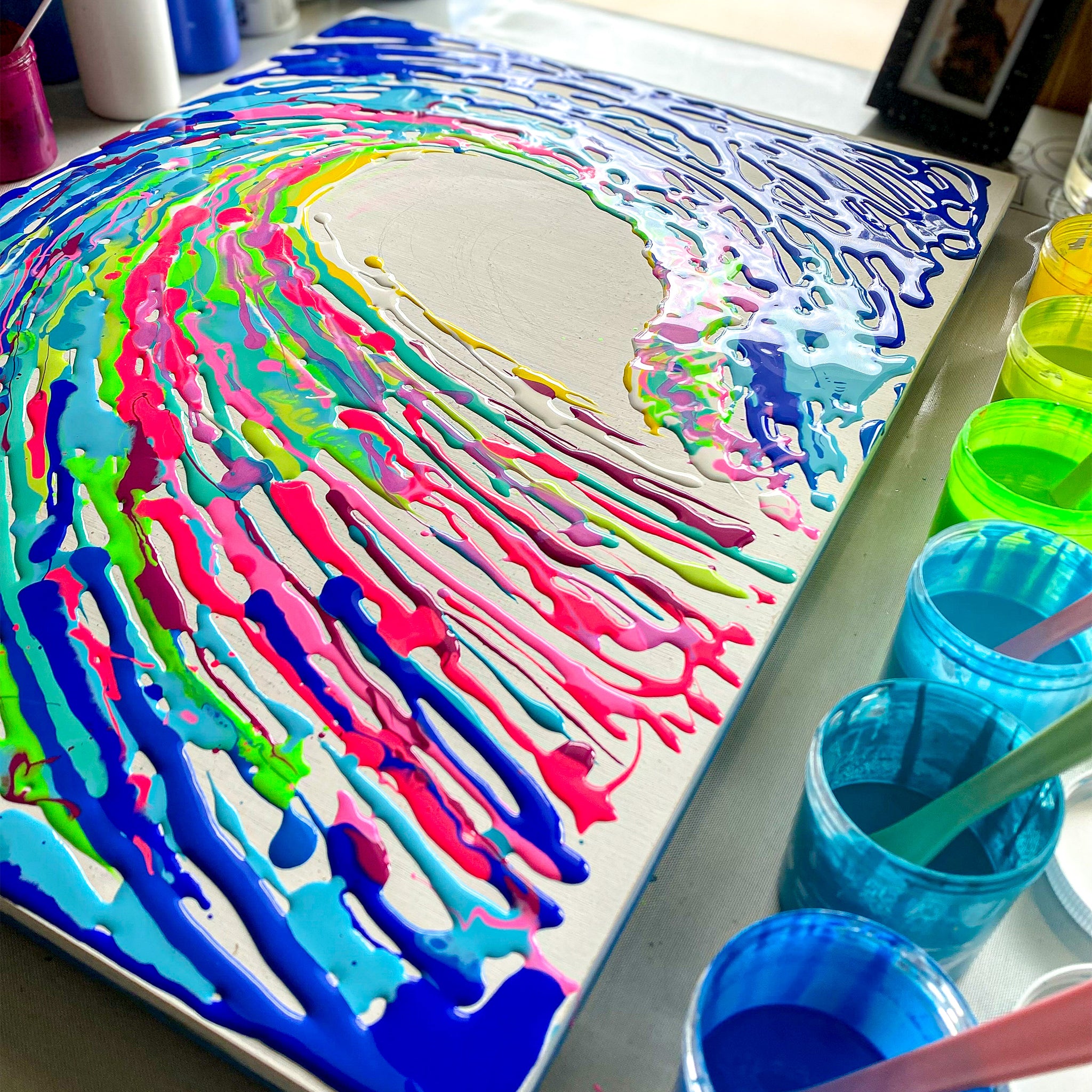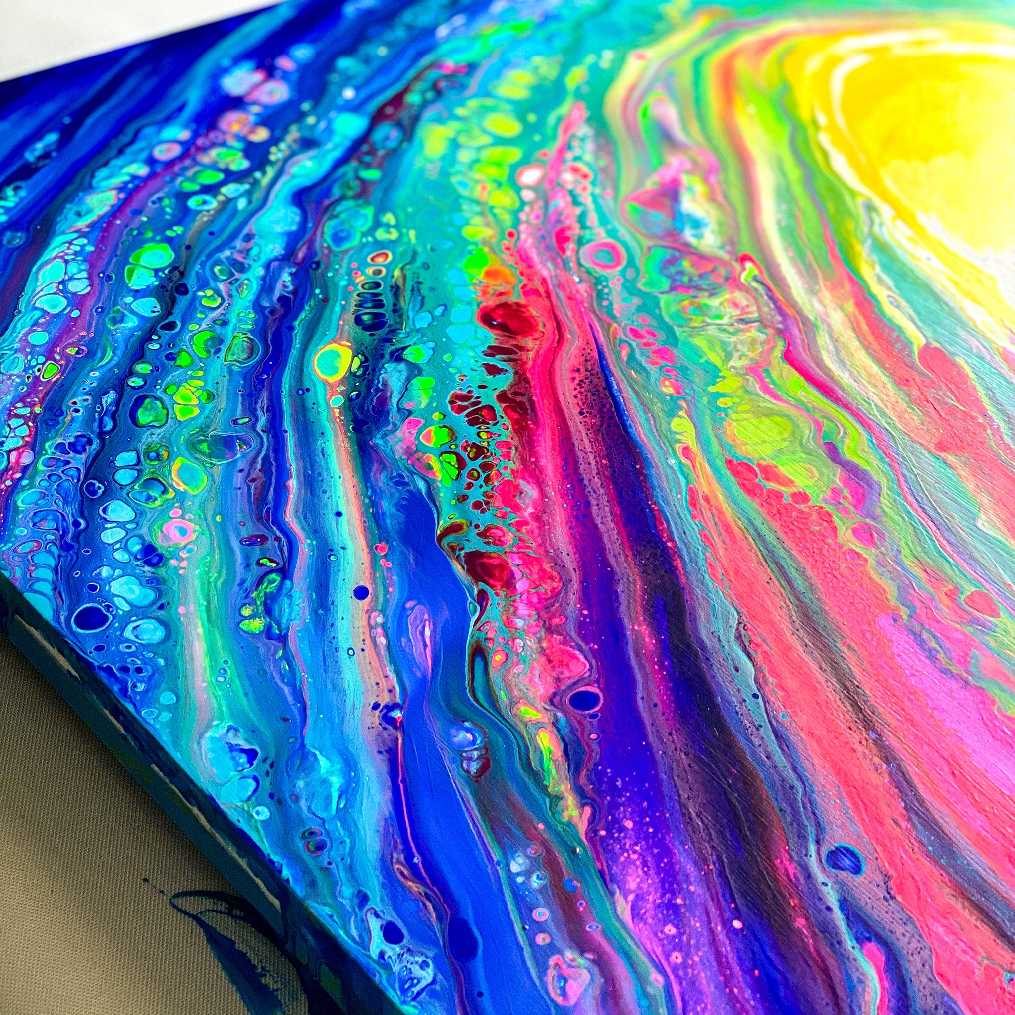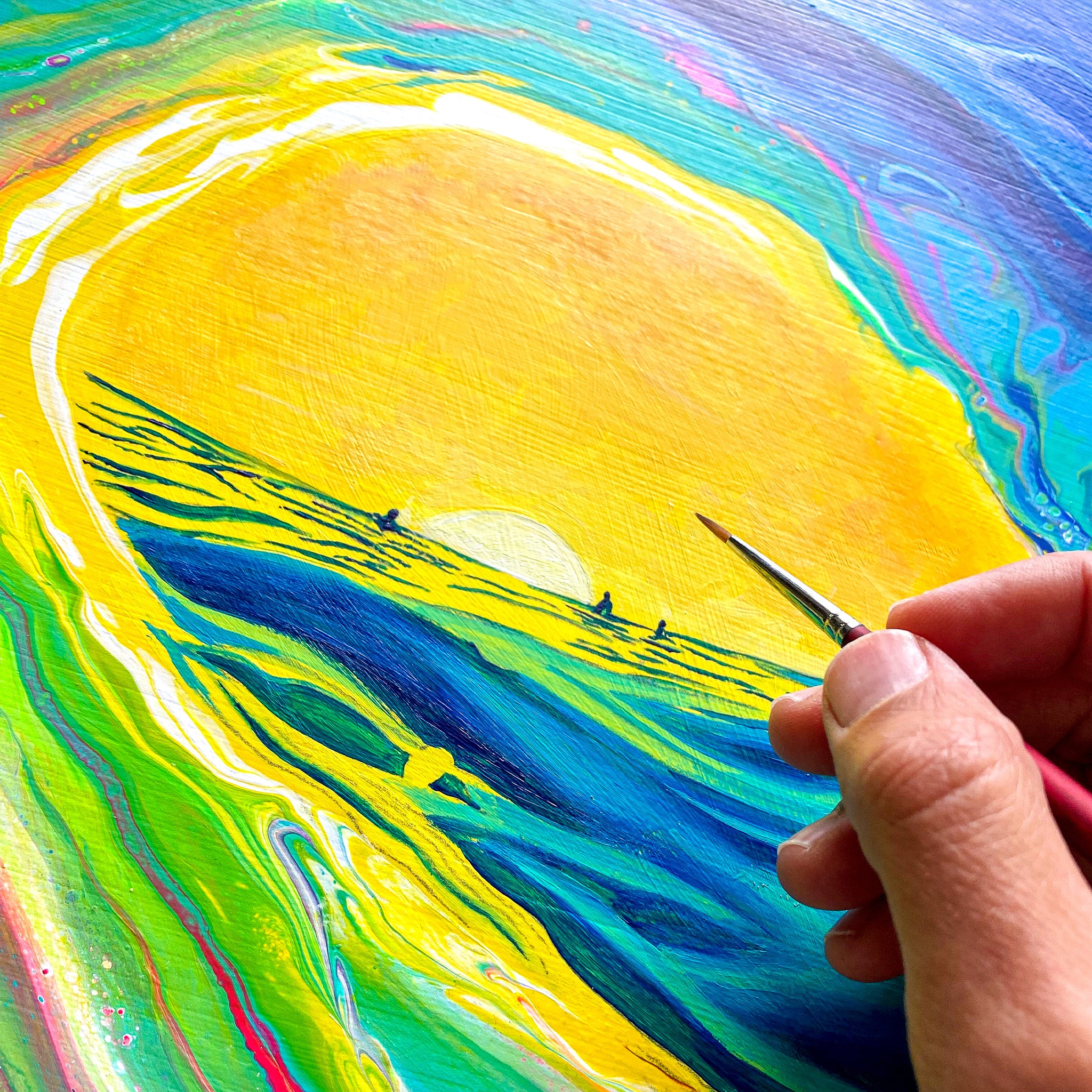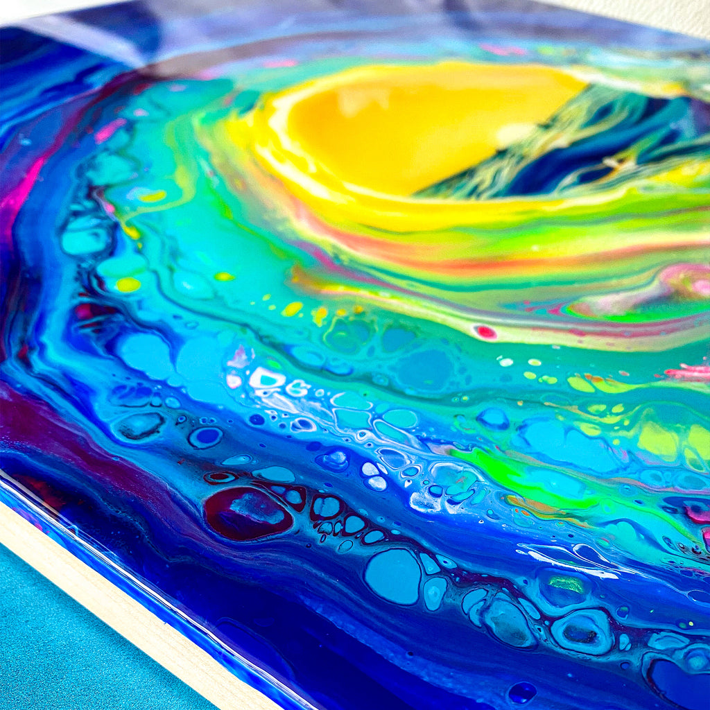 An original acrylic painting on wood panel and sealed with a fine art resin finish by Kahlia Lear. Wood panel is made from premium solid basswood giving fine, uniform characteristics, limited wood grain, and proven stability. Colors may vary due to monitor settings.