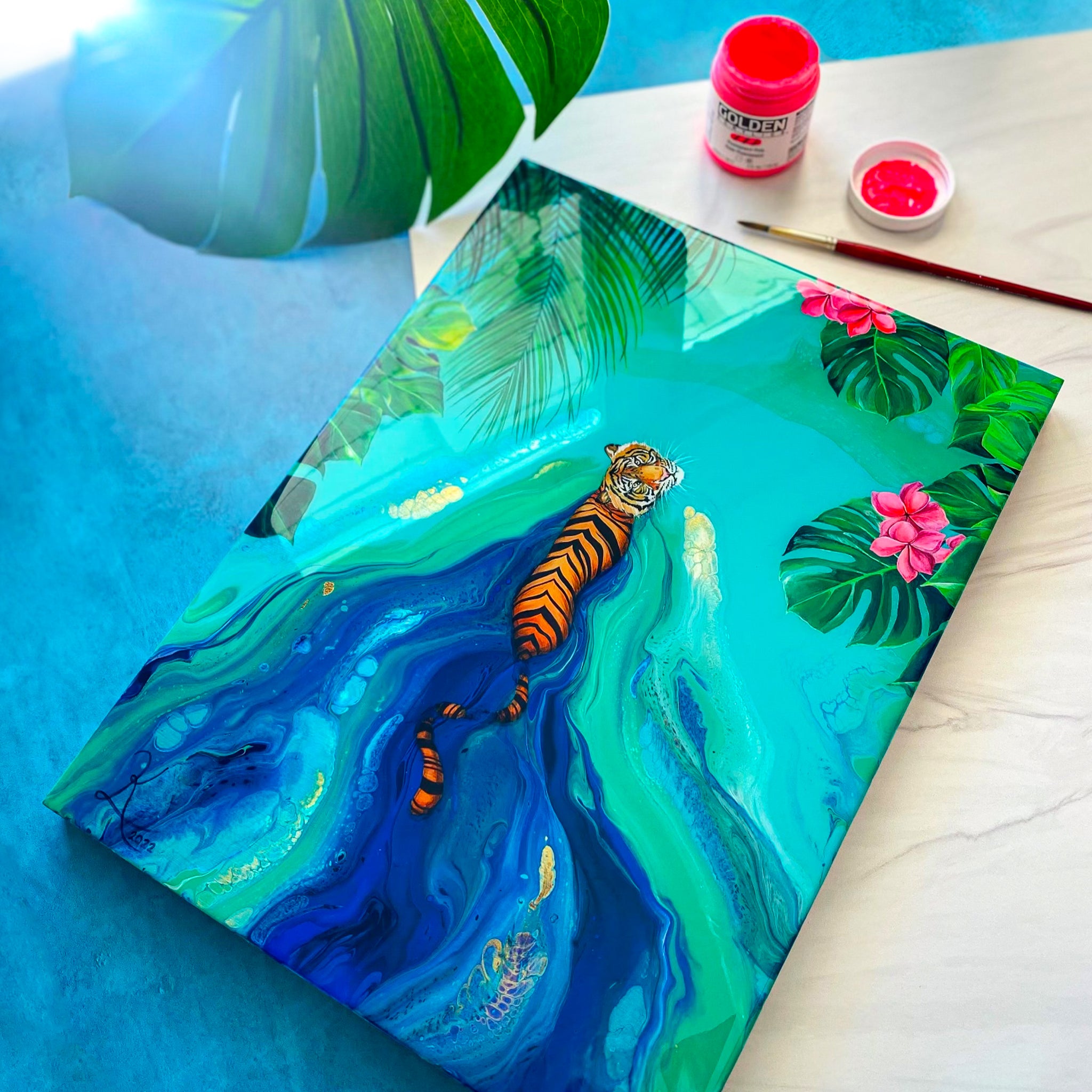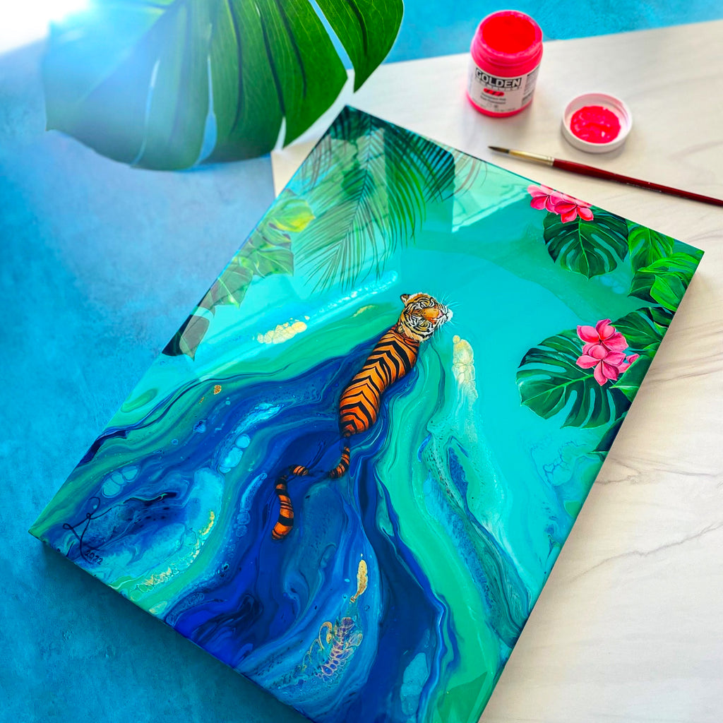 An original acrylic painting on wood panel and sealed with a fine art resin finish by Kahlia Lear. Wood panel is made from birch hardwood giving exceptional panel strength and rigidity, with very fine wood grain. Wood sourced from ecologically fast growth forests. Colors may vary due to monitor settings.
