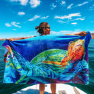 Lay out in style with this super comfy oversized beach towel. Each towel features original artwork painted and designed by Kahlia Lear. With a cool tropical drink in hand and plenty of room to lay out, your only other job is to soak up a little vitamin D.