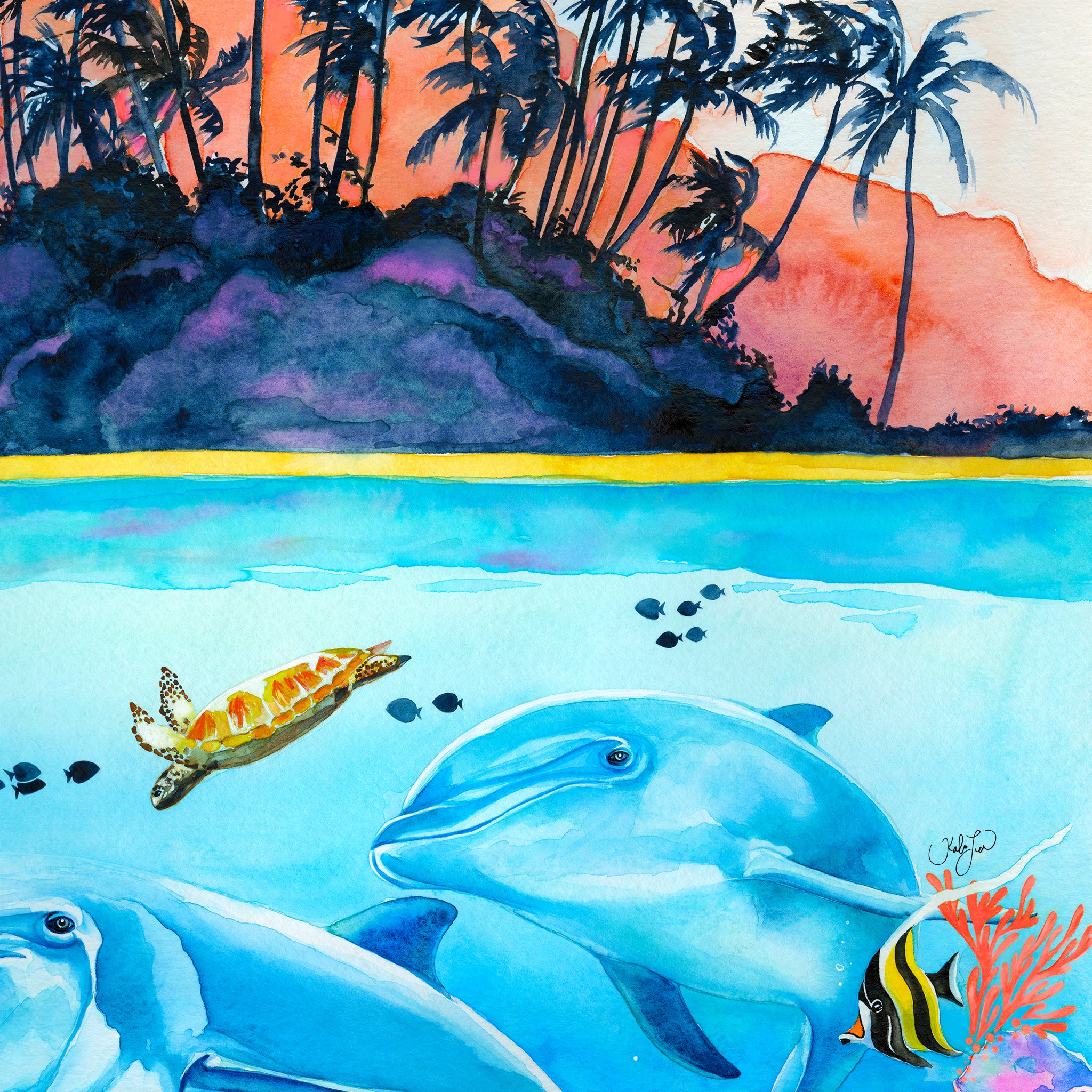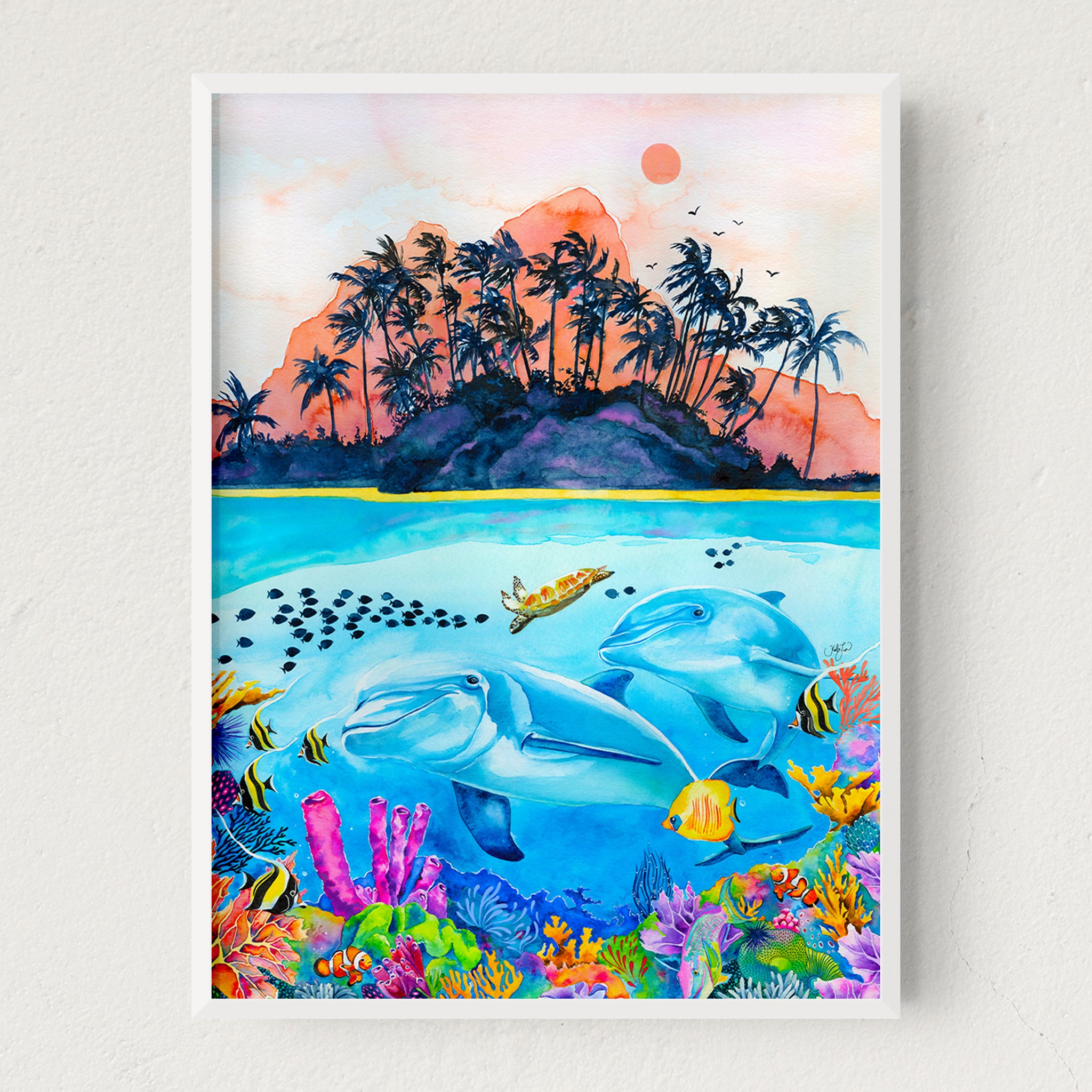 High quality inkjet print of an original watercolor painting by Kahlia Lear. All artwork is printed in house with vibrant pigment inks on 100% cotton rag 315gsm archival matte paper. Colors may vary due to monitor settings. Frames are shown for display purposes only and not included.